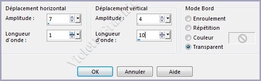 **Effets/Effets de Distorsion/ Vagues réglages suivants :