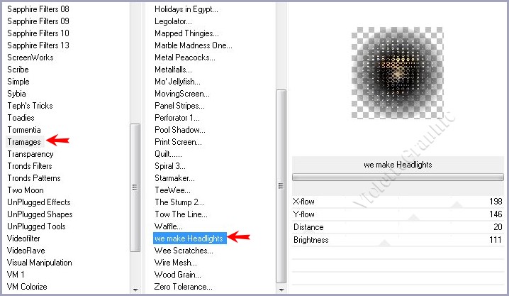 **Effets/Tramages/we make Headlights réglages suivants :