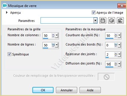 **Calques/Nouveau calque Remplir de couleur #2d2f48 **Effets/Effets de Textures/Mosaïque de verre réglages suivants :