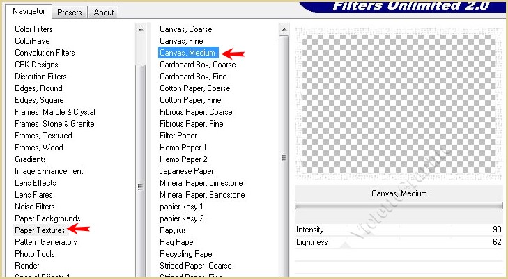 **Effets/Unlimited/Paper Textures/Canvas Medium réglages suivants :