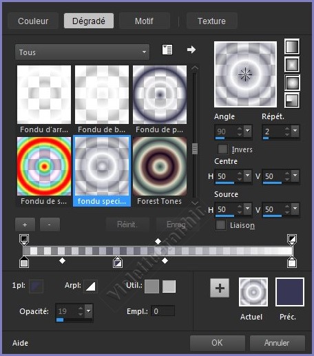 2 - Calques/Nouveau calque Remplir de fondu de dégradé