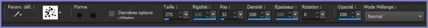 **Calques Nouveau calque raster Appliquer la couleur #34465f * toujours sélectionné * Appliquer le preset : preset_merceditas_naisem **Activer l'outil Pinceau et rechercher le pinceau/ taille: 275 /couleur avant-plan #ffffff