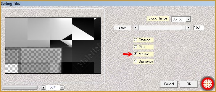 Remplir de dégradé **Effets/Medhi/Sorting Tiles réglages suivants :