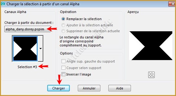 5 - Calques/Nouveau calqueSélection/Charger/Enregistrer une sélection/charger à partir charger à partir Canal Alpha Charger la sélection 3