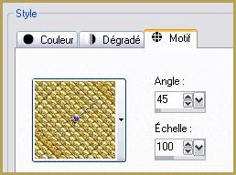 9 - Calques/Fusionner les calques visibles 10 - Dans la Palette de Style placer le motif or : Gold (417) Configuré ainsi: