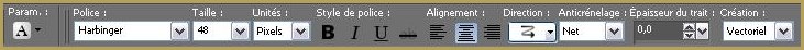 14 - Activer l'outil Texte/Police HARBINGER REGULAR /taille : 48 avant-plan fermé /couleur arrière-plan #fcffdd