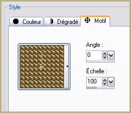15 - Calques/Nouveau calque Sélection/Sélectionner Tout Sélection/modifier/Contracter de 4 pixels Sélection/Inverser Remplir de motif or Sélection/Désélectionner