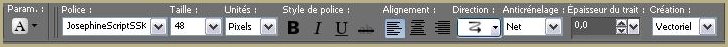 **Activer l'outil Texte/Police JosephineScriptSSK /taille : 48 avant-plan fermé /couleur arrière-plan #3f290d