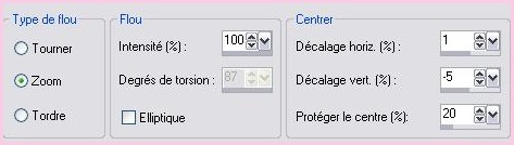 11 - Réglages/Flou/Flou radial réglages suivants :