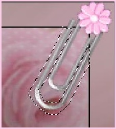 15 - Ouvrir le tube klammern .pspimage Sélectionner le trombone rose Edition/Copier/Edition/Coller comme nouveau calque Image/Redimensionner à 75% puis 2 fois à 50%/décocher " tous les calques" Réglages/Netteté/Netteté Placer comme sur l'image finale