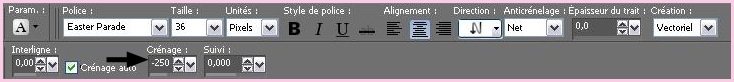 16 - Activer l'outil Texte/Police Easter Parade /taille : 36/direction: vertical et vers la gauche avant-plan fermé /couleur arrière-plan #f22e73