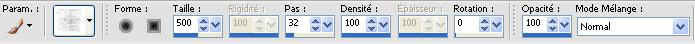 6 - Calque/Nouveau calque 7 - Installer en avant-plan la couleur blanche 8 - Activer l'outil pinceau , rechercher votre pinceau configuré ainsi: