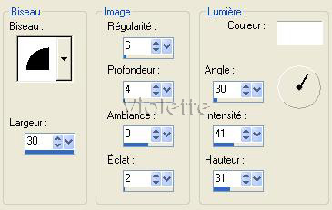 6 - Effets / Effets de Bords /Accentuer 7 - Effets / Effets 3D/Biseautage Intérieur :
