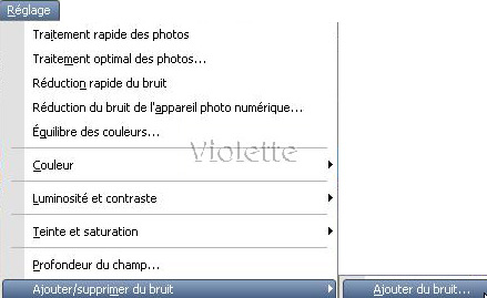 Placer-vous sur le calque 2 Réglages / Ajouter/supprimer du Bruit /Ajouter du Bruit :