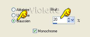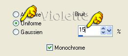 Placer-vous sur le calque 3 Réglages / Ajouter/supprimer du Bruit /Ajouter du Bruit :