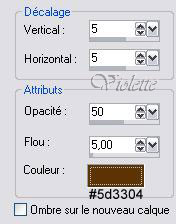 8 - Effets /Effets 3D/ Ombre Portée : 5/5/100/5/couleur#5d3304