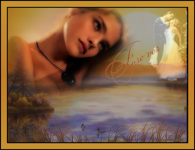 Entrer le texte : Forever Clic droit /Convertir en calque raster Placer sur le soleil 20 - Effets /Effets 3D/ Ombre Portée : 0/0/100/2/couleur #e6c094