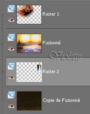 7 - Ouvrir le tube Sunrise Edition/Copier/ Edition/Coller comme nouveau calque Placer dans le coin supérieur droit Calques/Agencer/déplacer vers le bas Image/Miroir Faire bien coïncider pour qu'il y ait une chaîne de montagne Calques/Fusionner le calque du dessous