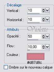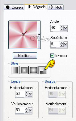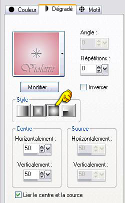 17 -Faire un clic à gauche et à droite comme sur le tag final 18 - Image/Ajouter des bordures : 2 pixels couleur #d87d8c 19 - Image/Ajouter des bordures : 20 pixels couleur avant-plan 20 - Sélectionner avec la baguette magique 21 - Configurer un dégradé halo répétition : 0 / inverser non coché