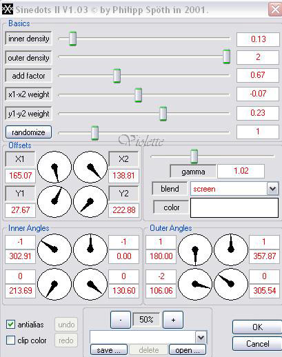 Ouvrir une image transparente de 700 et 500 pixels/ Remplir de dégradé 3 - Réglages/Flou/ Flou gaussien : rayon : 25 4- Calques/Nouveau calque 5 - Effets/Dragon Fly/Sinedot II :