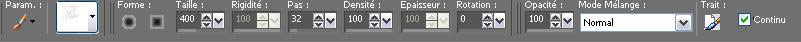 13 - Dupliquer 14 - Se placer sur le tube original Effets/Effets de distorsion/ vent à droite de 100 15 - Activer le calque du fond C alques/Nouveau calque16 - Activer l'outil pinceau configuré ainsi: couleur #eff1f4 avant-plan