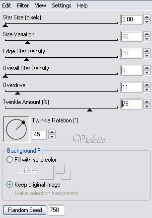 31 - Doubler ce niveau 2 fois 32 - Vous fermez les calques 2 et 3 se placer sur le calque 1 Effets / Alien Skin Xenofex2 / Constellation