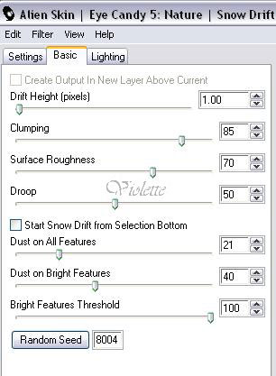 3 - Ouvrir une image transparente de 600 et 450 pixels/ Remplir de dégradé Réglages / Flou/ Flou gaussien : rayon : 204 - Effets/Alien Skin / Eye Candy 5/Nature/ Snow Drift