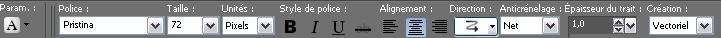 12 - Activer l'outil Texte/Police Pristina/taille : 72/Vectoriel avant-plan fermé /couleur arrière-plan #ffffff