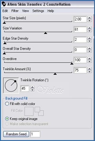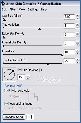 30 - Effets/Alien Skin Xenofex 2/Constellation avec ces réglages: