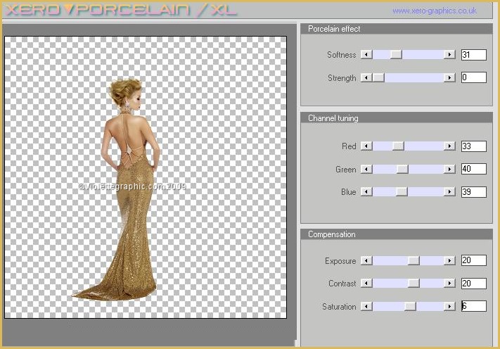 6 - Ouvrir de nouveau le tube " lady-elegance-ff3-tube-colombes" Edition/Copier/Edition/Coller comme nouveau calque Image/miroir 7 - Effets/Xero/Porcelain: