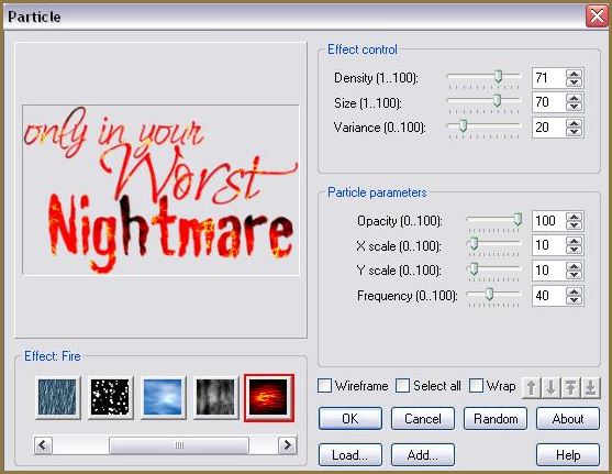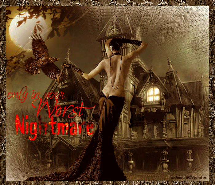 15 - Ouvrir le tube wordart « ccsnightmare » Edition/Copier/Edition/Coller comme nouveau calque Image/Redimensionner 1 fois à 85% et 1 fois à80%/décocher " tous les calques" Placer comme sur l'image finale