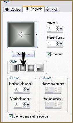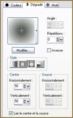2 - Placer en avant-plan la couleur #393e38 et en arrière-plan la couleur #ffffff Configurer un dégradé halo /Répétition: 0/Inverser coché