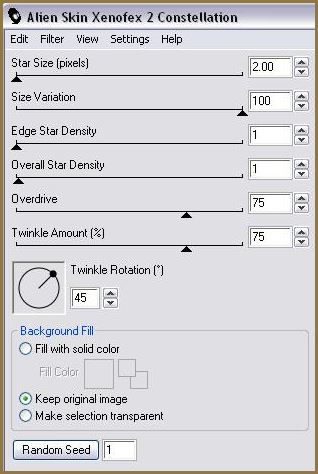 25 - Activer le calque 2 Effets/Alien Skin Xenoflex 2/ Constellation : clic sur Random Seed