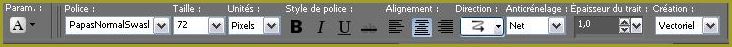 24 - Activer l'outil Texte/Police PapasNormalSwast/taille : 72 couleur avant-plan #fdd416 /couleur arrière-plan #7b2c00