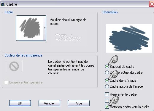 2 ème partie 8 - Ouvrir une image transparente de 550 et 350 pixels/Remplir de couleur #415c71 Calques/Nouveau calque Image/cadre/appliquer le cadre selon les réglages suivants :