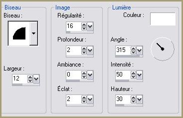 5 - Activer le premier calque dupliqué Effets/Effets 3D/Biseautage Intérieur avec ces réglages: