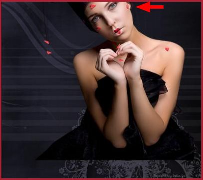 3 - Ouvrir de nouveau le tube calguisprettylove2569.pspimage Edition/Copier/Édition/Coller comme nouveau calque Image/Redimensionner à 75%/décocher " tous les calques" Placer comme sur l'image finale **Effets/Effets 3D/Ombre Portée : 0/0/30/24/ couleur #741120
