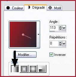 10 - Calques/Nouveau calque Remplir de dégradé linéaire: angle: 113/ répétition: 0/ inverser coché Avant-plan couleur #232632 /Arrière-plan couleur #ab1b23