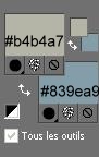 *** 1 - Ouvrir les tubes , les dupliquer et fermer les originaux 2 - Placer en avant-plan la couleur #b4b4a7 et en arrière-plan la couleur #839ea9