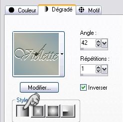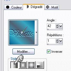 Configurer un dégradé linéaire angle: 42°/Répétition: 1/Inverser coché: