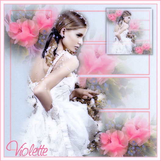 14-Image/Ajouter des bordures : 2 pixels couleur rose. 15- Image/Ajouter des bordures:15 pixels de couleur blanche. 16 – répéter n° 14. 17 – Signer/Fusionner tout. 18 – Au choix faire un effet Xero/Porcelain.
