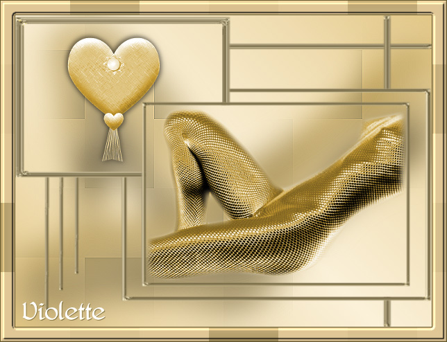 Traduction du Tutoriel Kiara de Betsie avec son aimable autorisation. ©Traductions Violette *** Kiara Matériel : Tubes ICI *** 1 - Ouvrir les tubes, les dupliquer et fermer les originaux. Prélever deux couleurs du tube 2 - Ouvrir une image de 600 x 450 pixels transparente 3 – Activer le template/Edition/copier 4 – Revenir sur l’image transparente Calques/nouveau calque/Sélectionner Tout/Edition/Coller dans la sélection Désélectionner 5 – Avec la baguette magique sélectionner le rectangle à droite/Calques/Nouveau calque 6- Activer le tube Juliane_mister_silvertorso/Edition/copier/Edition/Coller dans la sélection 7 - Avec la baguette magique sélectionner le rectangle de gauche/Calques/Nouveau calque 8 - Activer le tube hearts062 de Sandy/Edition/copier/Edition/Coller dans la sélection 9 - Fusionner les calques visibles 10– Prélever deux couleurs et faire un dégradé linéaire angle 45° répétition 1