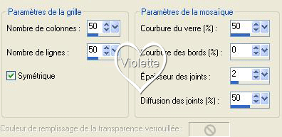 5 – Sélections/Charger la sélection/Charger à partir du disque/rechercher la sélection BR-50 6 – Calques/Nouveau calque/remplir de dégradé 7- Effets/Effets de textures/Mosaïque de verre :