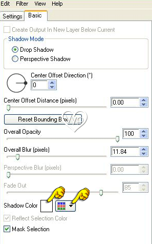 8 – Effets/Eye Candy 5/perspective shadow : si vous n’avez pas ce filtre faire un Effets 3D/Ombre portée avec le blanc