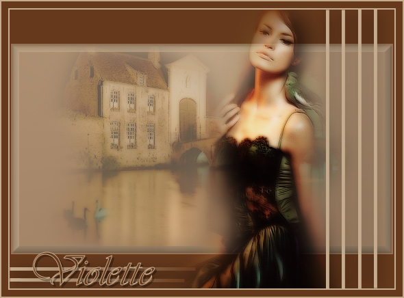 21 – Image/Ajouter des bordures : 2 pixels couleur claire 22 – Image/Ajouter des bordures : 10 pixels couleur sombre 23 - Image/Ajouter des bordures : 2 pixels couleur claire 24 – Signer/Fusionner tout. 25 – Exporter en JPEG Optimisé.