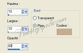 10 – répéter n° 8. 11 – Calques/Nouveau calque/Remplir de couleur claire :Opacité à 50%. 12 - Image/Ajouter des bordures :