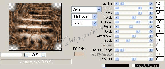 8 - Image/Ajouter des bordure : 2 pixels couleur blanche Sélectionner avec la baguette magique/Remplir de couleur de motif or 9 – Edition/copier/Edition/coller/Redimensionner à 80%.