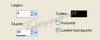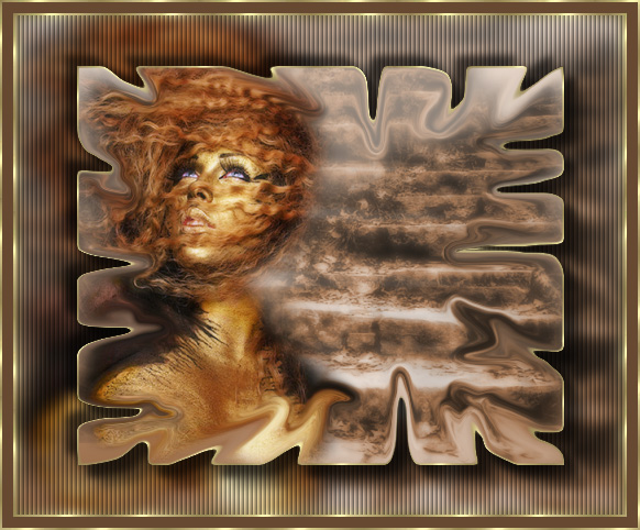 16 – Image/Ajouter des bordure : 2 pixels couleur blanche Sélectionner avec la baguette magique/Remplir de couleur de motif or 17 - Image/Ajouter des bordure : 10 pixels couleur foncée 18 - répéter n° 16 19 - Signer/Fusionner Tout. 20 – Exporter en JPG Optimisé.