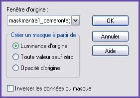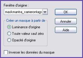 5 - Activer le masque maskmantra1_camerontags.jpg Calques/Nouveau calque de masque/à partir d'une image/Ajout d'un masque à partir d'une image sélectionner le masque maskmantra1_camerontags.jpg cocher luminance d'origine