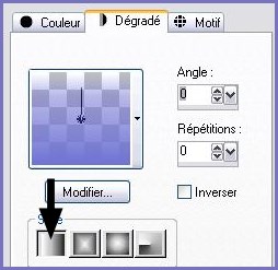 Configurer un dégradé linéaire angle: 0°/Répétition: 0